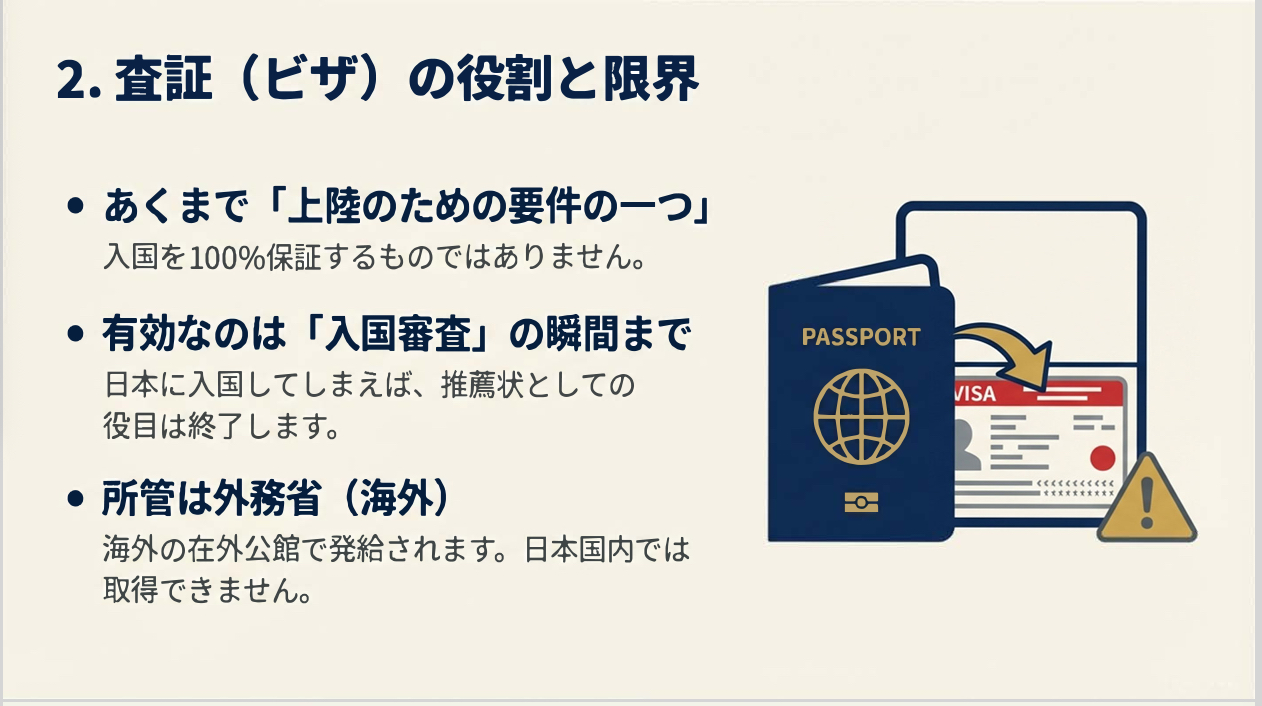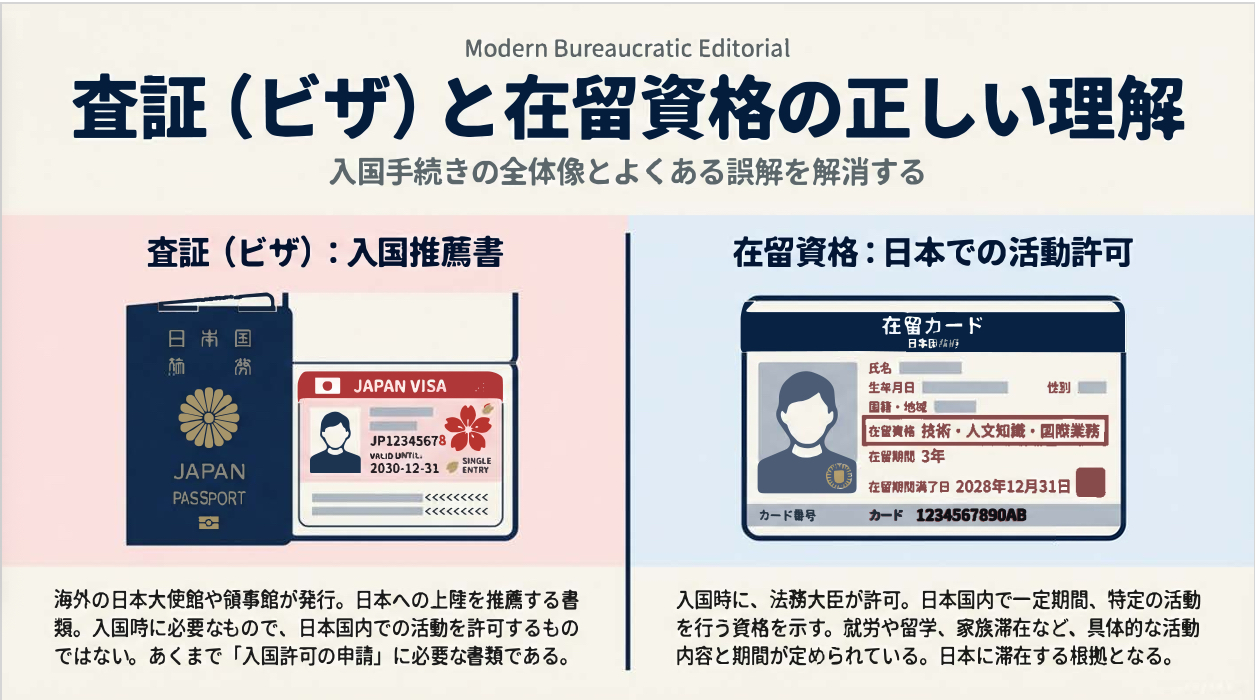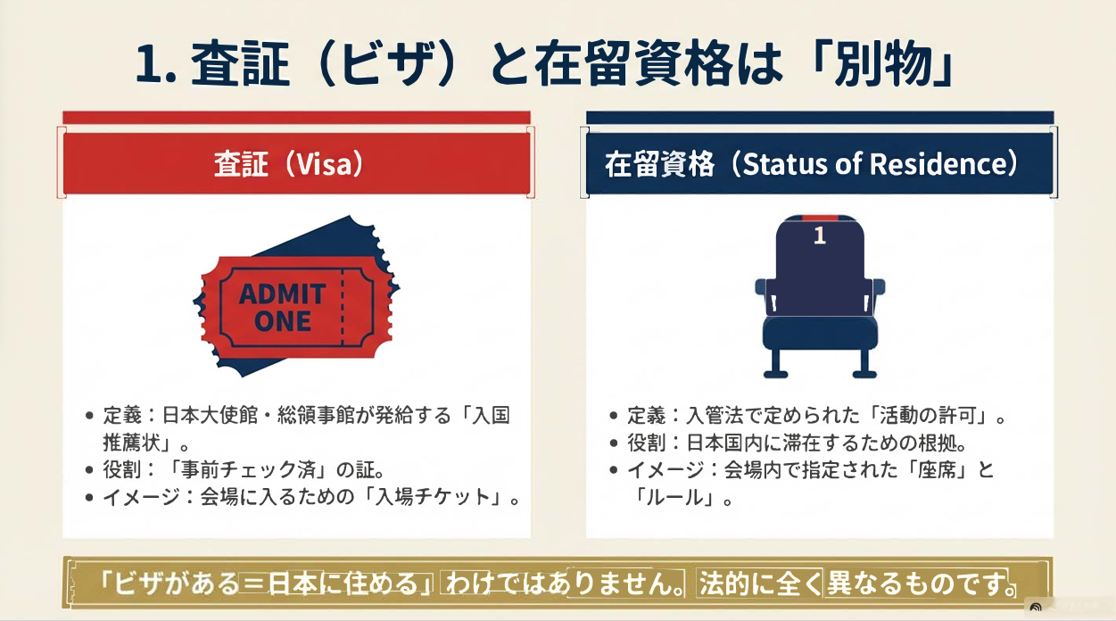 ✅1. 査証(ビザ)と在留資格は「別物」である