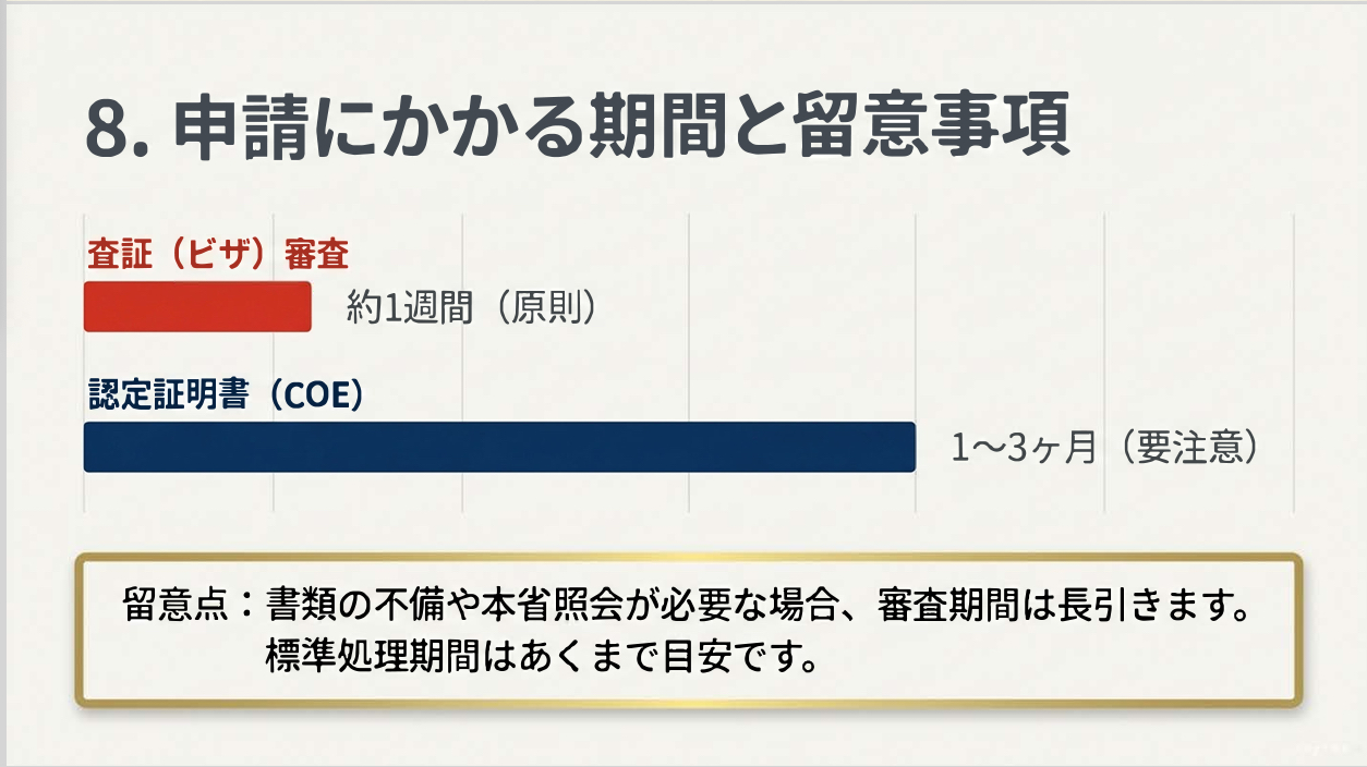 ✅8. 申請にかかる期間と留意事項(実務のリアル)