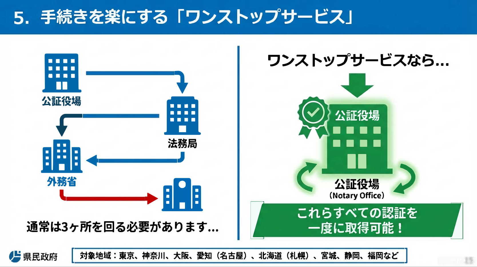 外務省のFAQでは、**愛知県を含む複数地域で「ワンストップサービス」**が利用できると明記されています。