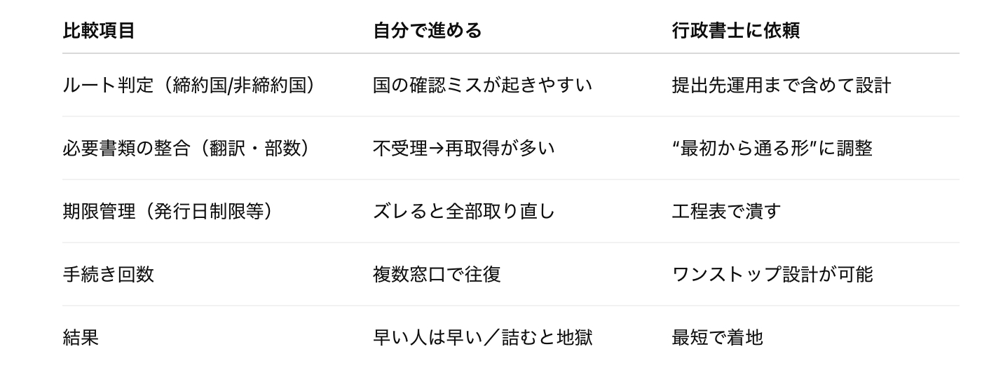 【自分でやる vs 行政書士に依頼】比較表