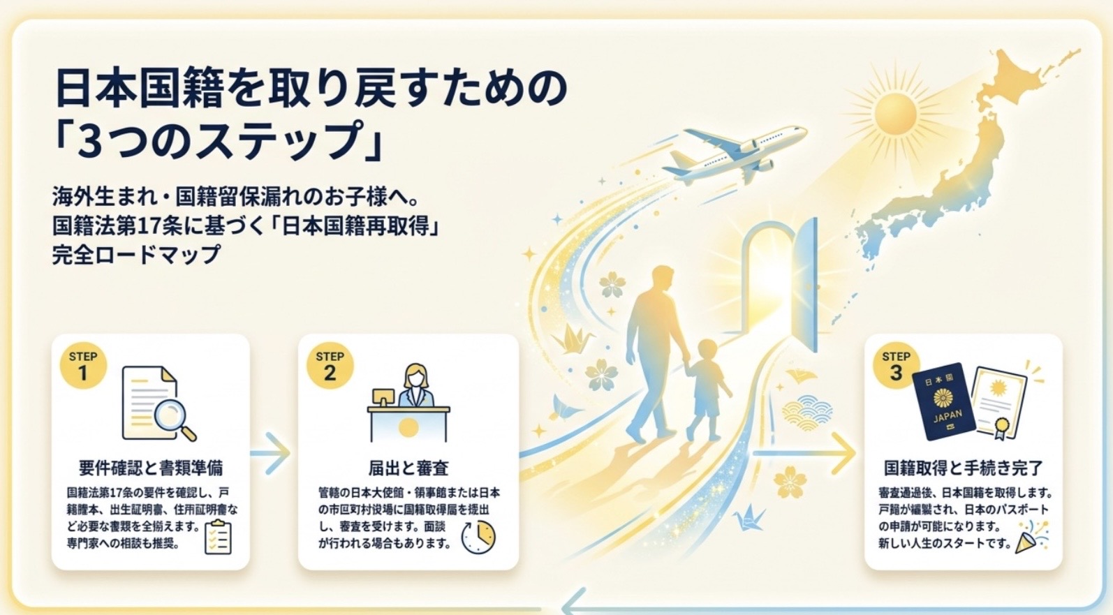 本記事では、名古屋のプランナー行政書士事務所が、最新の国籍法に基づき、失った日本国籍を「届出」だけで取り戻すための*救済措置(国籍法第17条)について、どこよりも詳しく解説します。