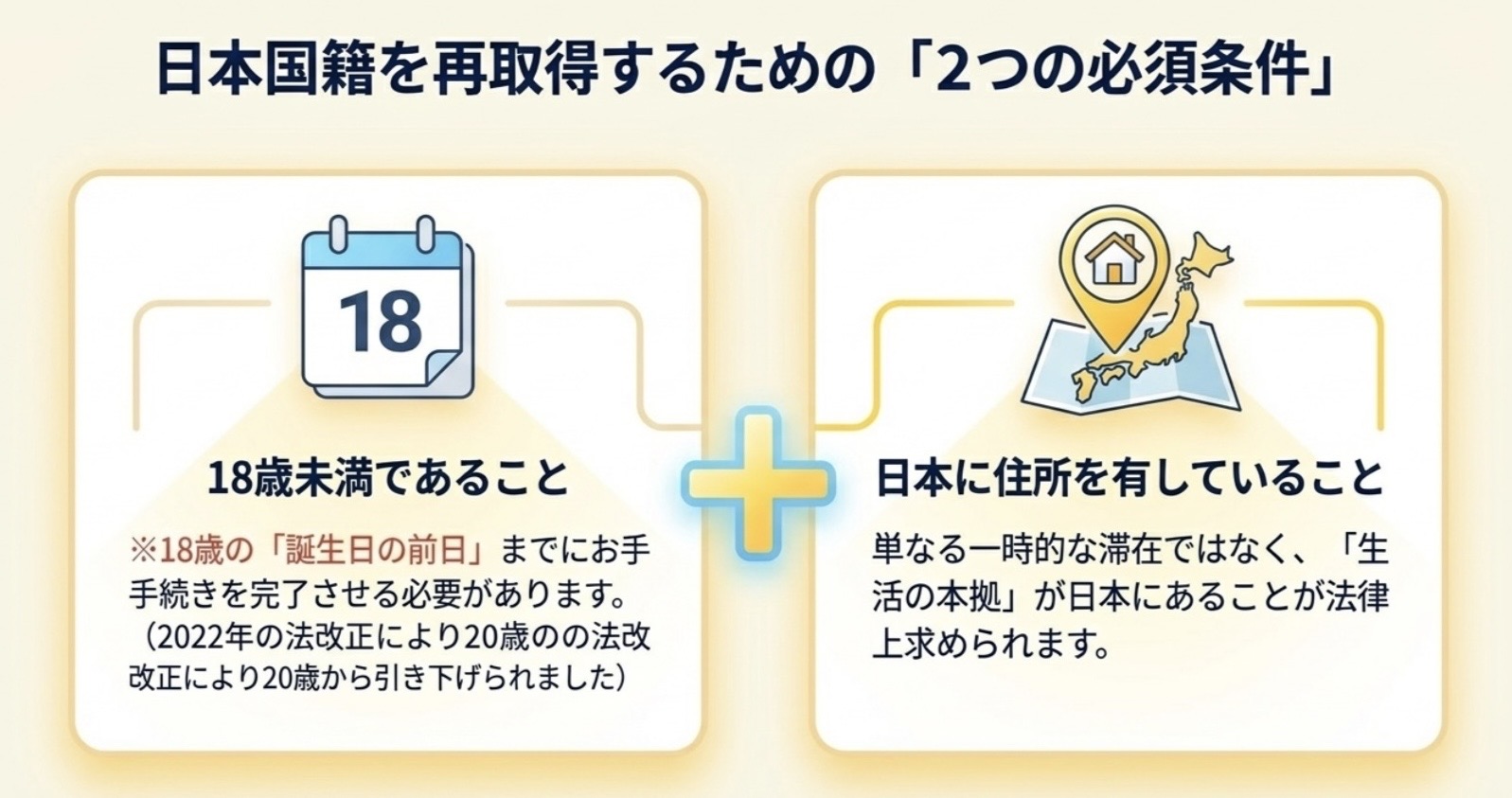 ✅2. 救済措置:国籍再取得の条件(国籍法第17条第1項)